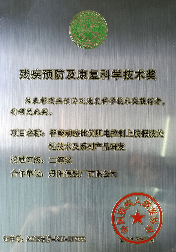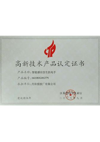 Certification of high-tech products of intelligent induction EMG proportional control prosthesis